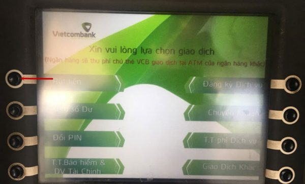 Trên màn hình sẽ hiển thị hàng loạt giao dịch khác nhau như kiểm tra số dư, chuyển khoản, đổi mã pin, rút tiền… Để rút tiền bạn chỉ cần chọn mục tương ứng là được.