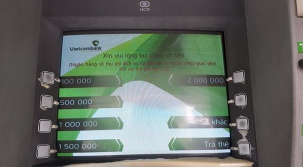 Màn hình cây ATM sẽ hiển thị các số tiền khác nhau được máy đề xuất bạn có thể chọn số tiền có sẵn hoặc chọn mục “Nhập số khác” để chọn số tiền mình cần rút. Sau đó nhấn phím “OK” hoặc “Enter” để hoàn tất giao dịch là được.