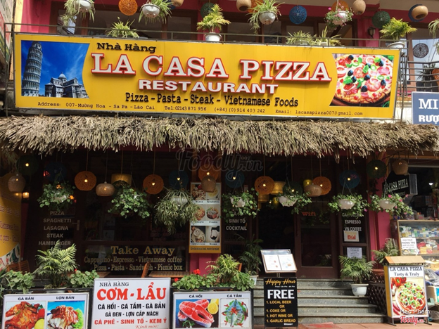 Đến Sapa các bạn cũng có thể thưởng thức món âu tại nhà hàng Pizza La Casa ngon số 1 tại đây. Nhà hàng này có nhiều món ăn Á Âu kết hợp, có các món nướng và một vài đặc sản Sapa. Pizza la Casa không chỉ thu hút du khách trong nước mà khách nước ngoài khi đến Sapa cũng chọn đây là địa chỉ lý tưởng để thưởng thức ẩm thực độc đáo nhất.